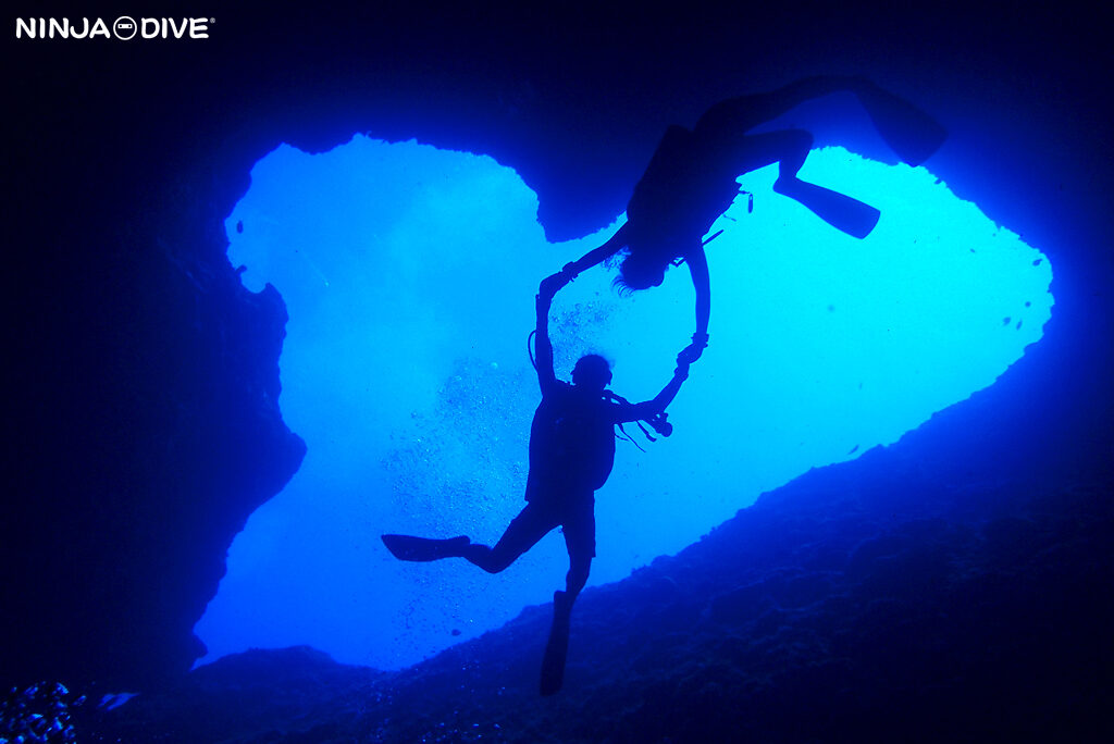ブルーホールといえば!ハートの天窓とダイバーシルエット💙足が見切れてますがそれがかえって楽しそうでもありますね!足の形が「ルンルン♪」してます。