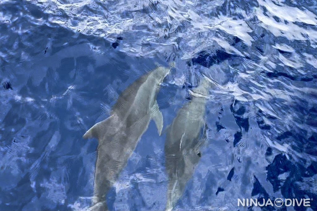 ラッキーなことにダイビング前に🐬イルカちゃん数頭に遭遇しました!イルカウォッチングツアーで見るハシナガイルカよりも一回り大きく鼻先も短かかったので、きっとミナミハンドウイルカ(ミナミバンドウイルカ)だったのではないかな…と思います。ボートの船首にピタッとくっつくように同じスピードでしばらく並走?並泳!してくれ、その姿があまりにもタフで可憐で崇高でワクワクが止まりませんでした❤️ グアムのリバレーションデーの本日、こんな嬉しいイルカちゃん大サービスで朝の大渋滞の疲れも吹っ飛びました。