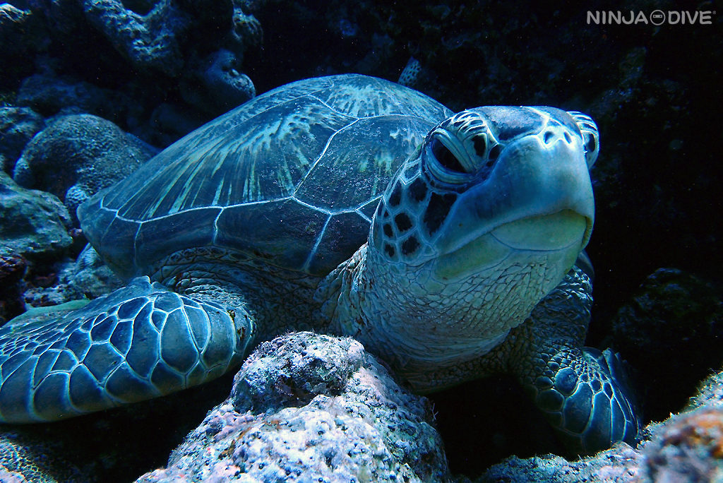 いたることろにカメカメカメ!というカメ三昧のエリアを外洋で発見しました!1ダイブに軽く10匹は遭遇したのでよっぽど居心地のいい場所なのでしょう。以前はバラクーダロック⇄クレバスの間で沢山のカメに遭遇しましたが最近とんと姿を見かけなくなっていたので、久々のカメ三昧に嬉しくなりました。いつの間にカメ達は大移動したのでしょうか…