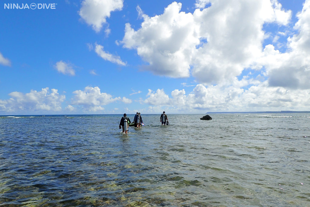 遠浅なのでエントリー位置までなかなかの距離を感じました。足元はサンゴや岩でゴツゴツしているので、ブーツはハイカットの厚底フェルト素材が適しているなぁと実感。