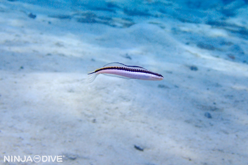 細身のボディでホバリングするカワイコちゃん、テンクロスジギンポ(英名 Piano Blenny)は見た目の可愛さとはウラハラに案外 肉食系です。他の魚の皮膚やヒレなどを食いちぎったり、ダイバーの露出部分に嚙みついてきたりします。見た目に惑わされてはいけませんね!