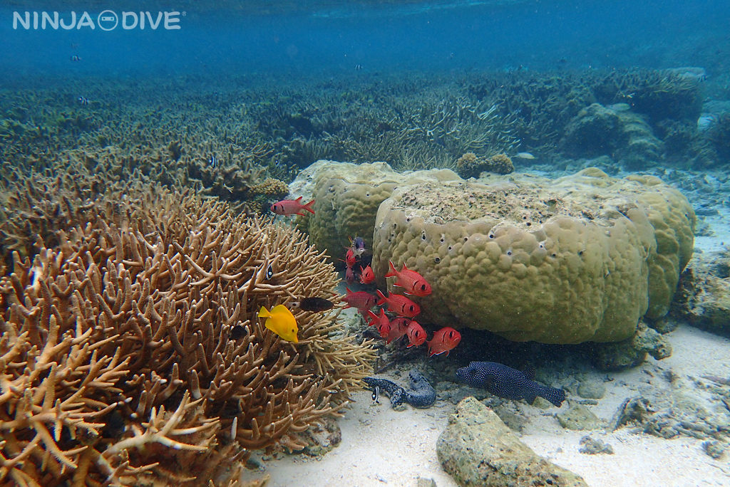 そういえば今年のグアムは台風の影響がない!毎年8月ぐらいから10月いっぱいまでグアム島の右っちょで台風が発生して、対策のショッピングで大騒ぎしてますが、気づいたら今年はまだ1回も台風の通過なし!? こんなことってあるんだなぁ…島はコロナでそれどころじゃないから台風も遠慮してくれてる?(日本は沖縄を中心に何度かスーパー台風の通過はありましたね)そんなこんなで季節は秋となりましたがが、海の中は相変わらず元気なお魚たちで盛り上がっています。右下の黒白の水玉模様は「ミゾレフグ」、真ん中の赤い目力は「アカマツカサ」左の黄色は「キイロハギ」見たまんまのネーミングで可笑しいですね。🐠🐟🐡
