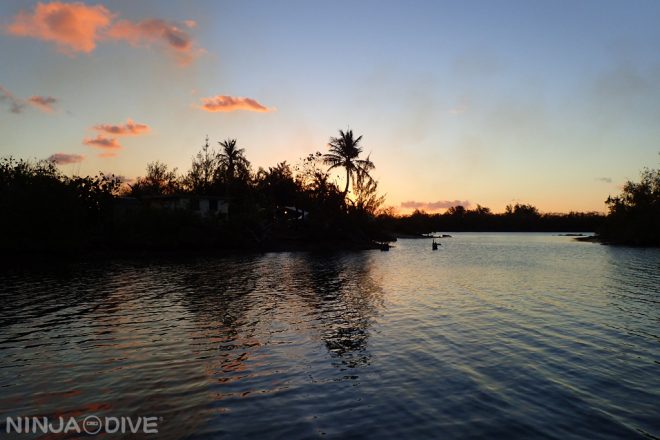 ボートで行くナイトダイビング、その出港直前の夕陽と木々のシルエットです。日中とは … Read More