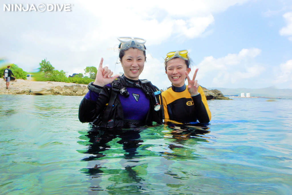 社員旅行でお越しのおふたり、まるまる自由になるのがこの日1日だけとのこと。ダイビングを楽しまれたあとは街へショッピングに繰り出すとのことでした。グアムはそう大きくない島ですから滞在時間の少ない弾丸旅行や1日しか自由時間のとれない社員旅行中でも、海と街の両方を楽しめてマルですね。