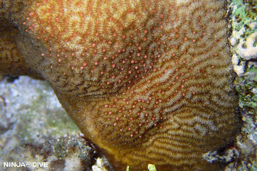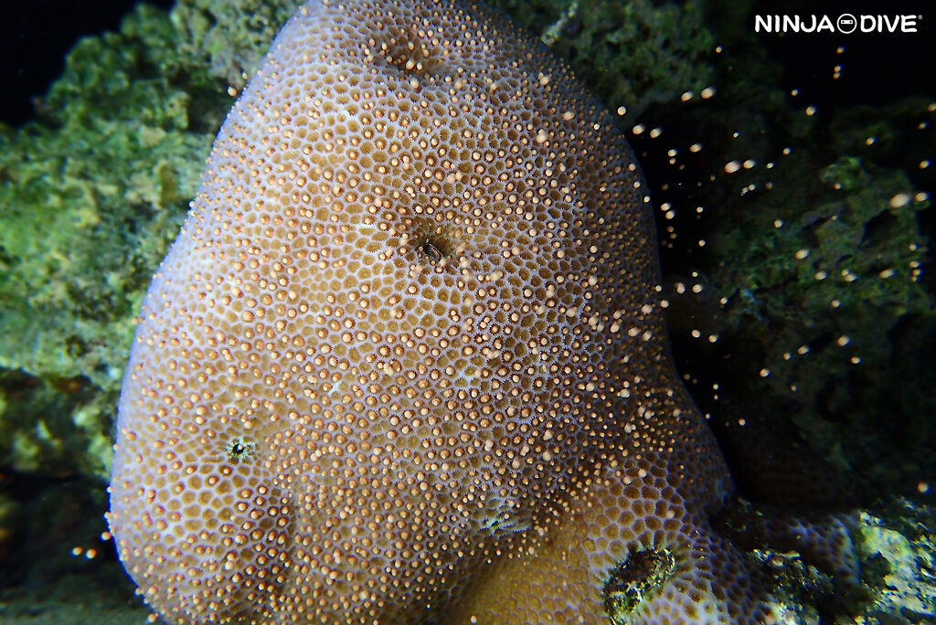 コモンキクメイシ(Goniastrea retiformis)の放卵。背筋がゾワゾワするブツブツっぷりですが(w)大きめなバンドルを一斉に放卵する様は幻想的です。