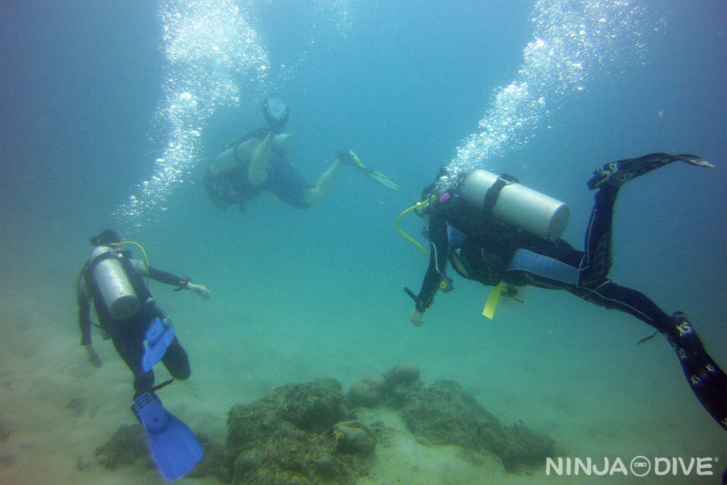 潜水 Diving | 講習 License AOW講習 2015年12月7日 by NINJA DIVE アドバンス講習初日!オープンウォーターを経てレベルアップチャレンジ。ビーチエントリーで中性浮力の練習をしているところです。水底に足を1度もつけないように泳いでます。お見事です。