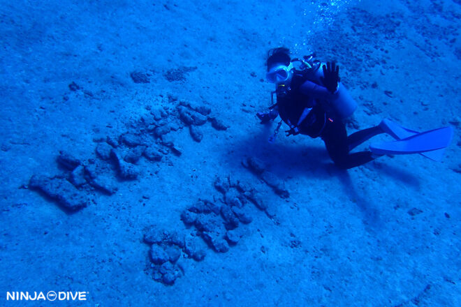 今日のファンダイビングの1本目は「クレバス」。ダイバーYさんと水底に文字を並べる … Read More