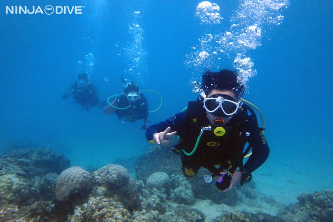 講習2日目にしてこの見事な中性浮力!バツグンの水中センスと勘の良さで、楽々とライ … Read More
