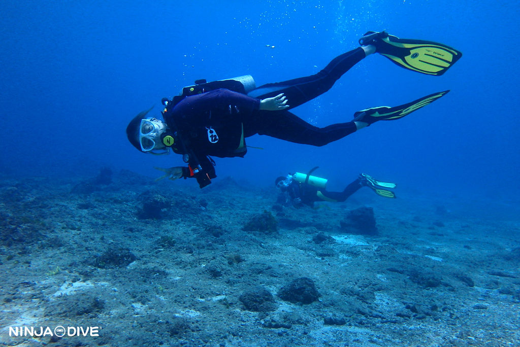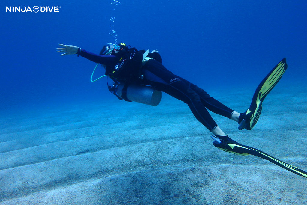 透明度もよく、のびのび癒しのダイビングとなりました。この通り、砂紋が美しいですね!水中でいろんな姿勢をとりたくなるのもわかります。