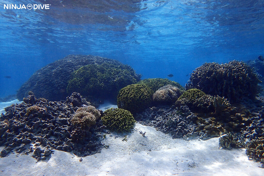 台風後は連日停電なのでクールダウン目的で私とディビッドは海へ逃げこんでいました。海の中は「台風なんてどこふく風」とびっくりするほど透明度もよく穏やかでした。むしろ上昇傾向にあった水温が台風でかき混ぜられ、適温に下がったような感触すらありました。