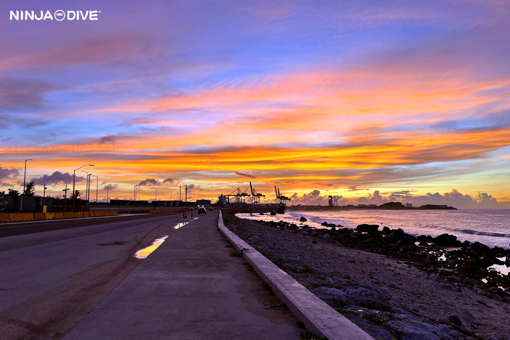 ナイトダイビング前の夕陽、大好きな色。この美しい色を見ればテンション上がるの間違いなしです。